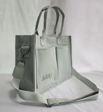 Enhance your style with the Jalely Tote Bag. Featuring a sleek, minimalist design with subtle 'Jalely' embroidery, it is the ideal accessory for any occasion. From the office to casual outings or weekend getaways, this tote bag effortlessly complements your ensemble.